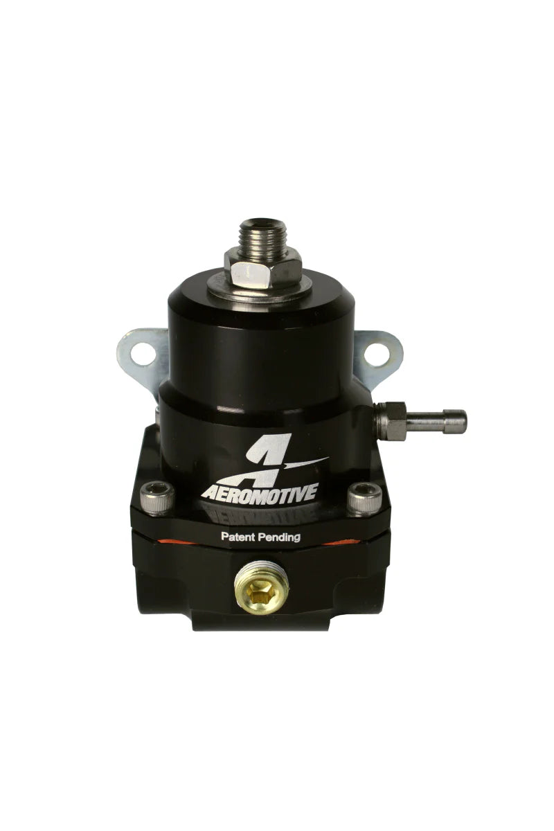 This next generation A1000 EFI regulator features legendary Aeromotive flow and pressure control in a new body, profiled for reduced size and weight. This new, patented design features a deep, bright-dip black anodized finish on the cap and base, with AN spec ORB (o-ring boss) style inlet/outlet and return ports. In addition to the aesthetic enhancements, this next generation version A1000 regulator provides a distinct visual cue that you've purchased a genuine, Aeromotive EFI regulator, ensuring our valuable customers are not tricked into purchasing an inferior, knock-off or counterfeit component like so many flooding the market from across the ocean. On the street and at the track, A1000 regulators have logged more miles, laps and passes than any other performance EFI regulators in the world! High Performance, adjustable EFI regulator designed for medium to high horsepower app lications. This regulator features Aeromotive's high-flow design, superb pressure control, and legendary durability. Engineered for A1000 class and smaller pumps. Gas, ethanol, methanol, and diesel compatible. 40-75 PSI adjustable base pressure range. 1:1 vacuum/boost reference capability. 1/8 NPT dedicated gauge port. (2) ORB inlet/outlet ports. (1) ORB return port.